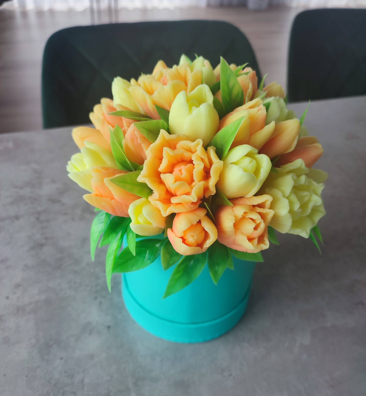 Gėlių kompozicija iš kietojo muilo