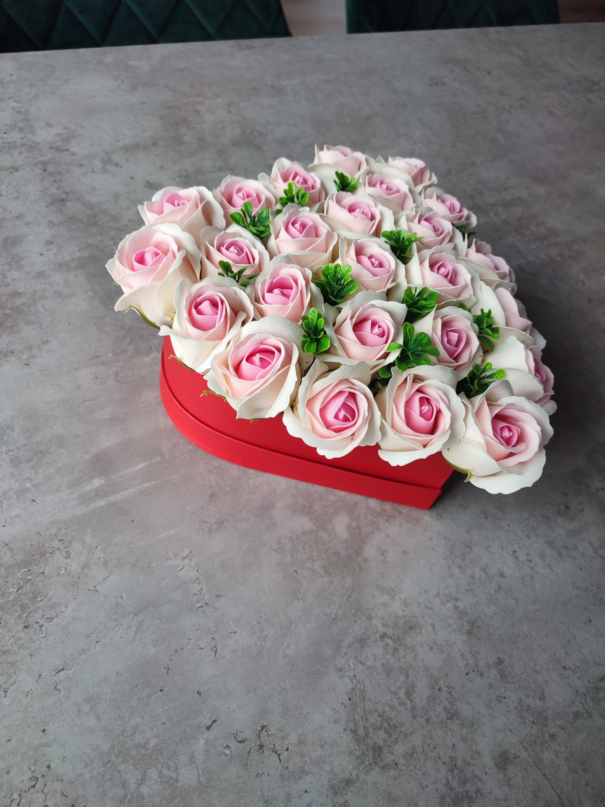 Puokštė pagaminta iš 25 plonojo muilo rožių. Tai puiki dovana Jūsų artimam žmogui.